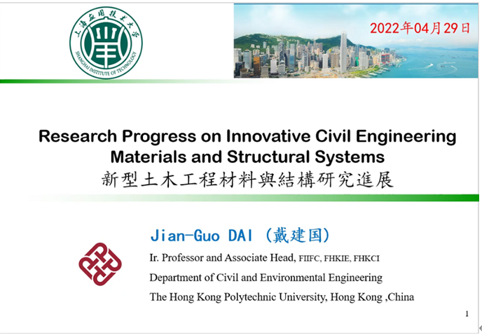 近日,城建学院举行学术讲座,香港理工大学戴建国教授以“新型土木工程材料与结构研究进展”为题线上主讲,本次讲座为“城市安全与可持续发展”系列之海外名师第一场讲座。城建学院院长丁文胜主持讲座,学院师生及上海市建科院、东南大学、同济大学、哈工大、上海交大等企事业单位专家学者线上聆听。
