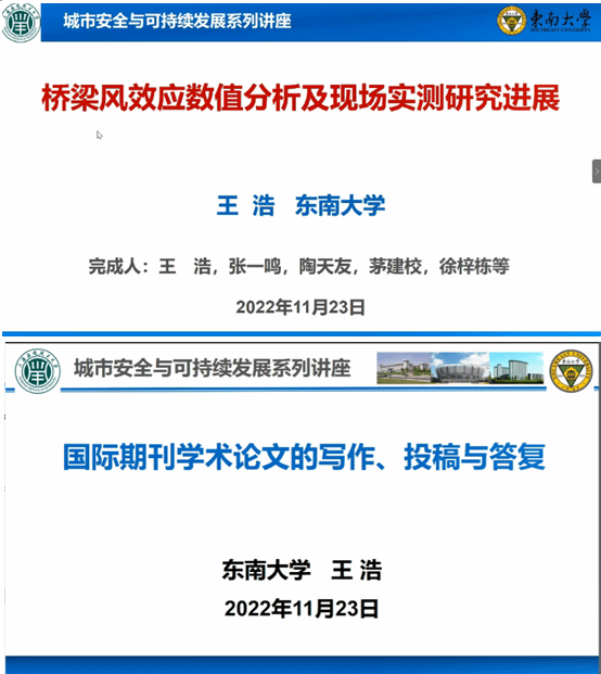 近日,东南大学王浩教授为城建学院师生做了题为“桥梁风效应数值分析及现场实测研究进展”及“国际期刊学术论文的写作、投稿与回复”两个讲座。城建学院院长丁文胜主持讲座,70余名师生参加。